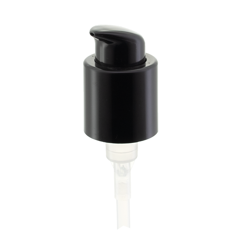 28/410 Lesklá černá pumpička na pleťové vody s průhlednou čepičkou